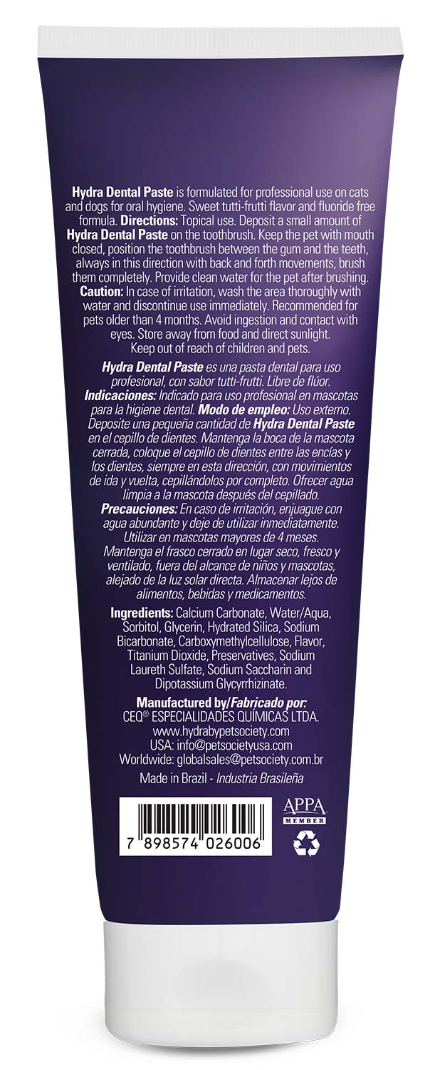 Hydra Professional Zahnpasta reinigt die Zähne und sorgt für frischen Atem. Diese fluoridfreie Zahnpasta enthält Kalziumkarbonat und Natriumbikarbonat für eine verbesserte Reinigungswirkung. Geeignet für alle Hunde- und Katzenrassen ab einem Alter von 4 Wochen.